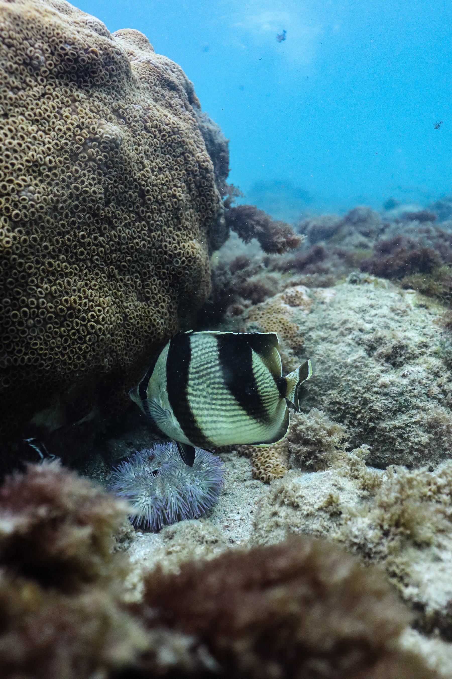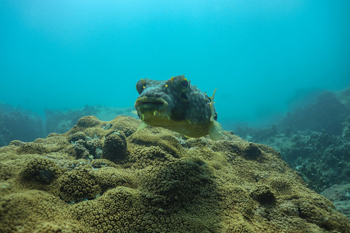 Todos adaptados, iniciamos o mergulho de flutuação livre na bancada de corais, sendo a todo momento monitorados por mergulhadores de segurança. Durante o mergulho, os guias auxiliam e apresentam a rica biodiversidade marinha, incluindo tartarugas, peixes e corais. ( 60 minutos )