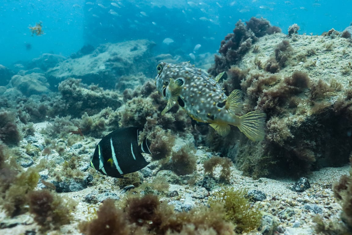 Antes de iniciar o mergulho, é realizada uma introdução à biodiversidade marinha. Fornecemos materiais didáticos como o Guia de Identificação de Tartarugas Marinhas e o Guia de Identificação das Espécies do Costão Rochoso de Arraial do Cabo. (Duração: 15 minutos)