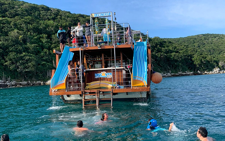 • Motorização dupla (2 motores por embarcação) – segurança acima da média em Arraial
